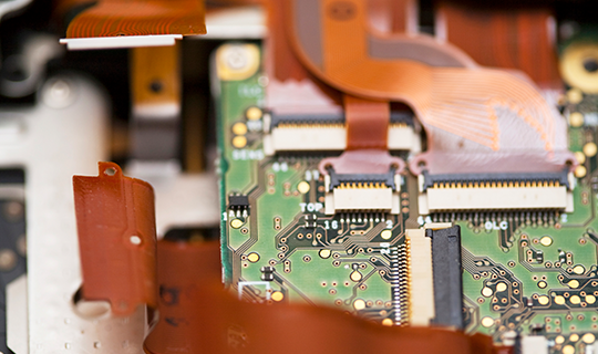 FR-4とは異なり、FPCは薄いポリイミドまたはPETフィルムを使用することで高い柔軟性があり、屈曲させることが可能なため、自由度の高い基板として注目されています。曲げても電気的特性は変わらないため、近年の電子機器の軽量化や薄型への対応にも大きく貢献してきました。当社ではFPCのご相談はもちろん、FR-4とFPCの両素材を使用した基板作成まで、お客様のご要望に沿った製品をご提供いたします。